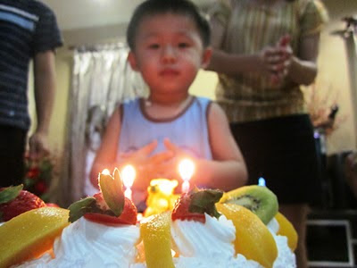 忍不住吃掉蛋糕的样子 但被逼唱歌hehehe..